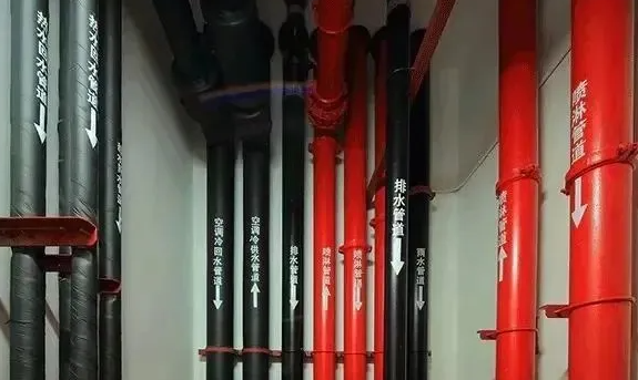 北京消防噴淋系統增加100mm寬的黃色色環,方便與消火栓系統區分。
